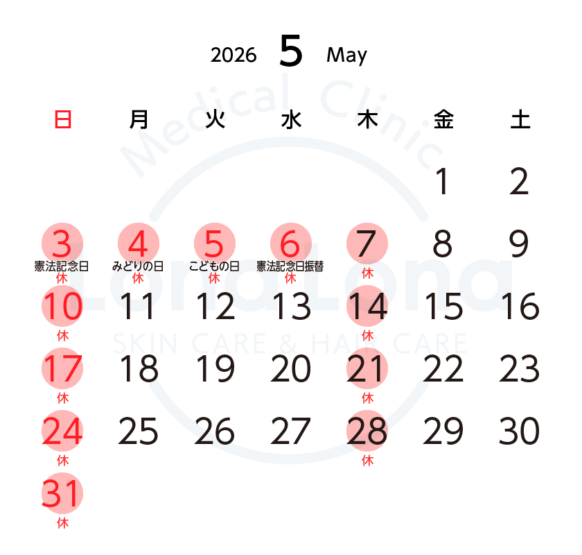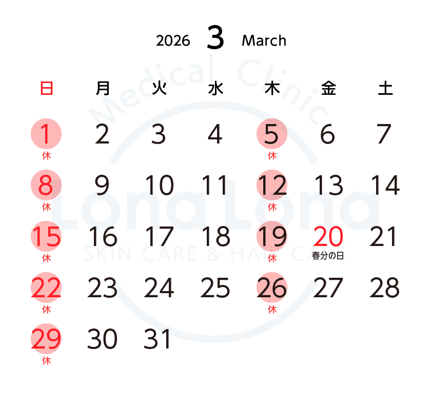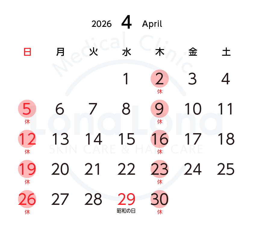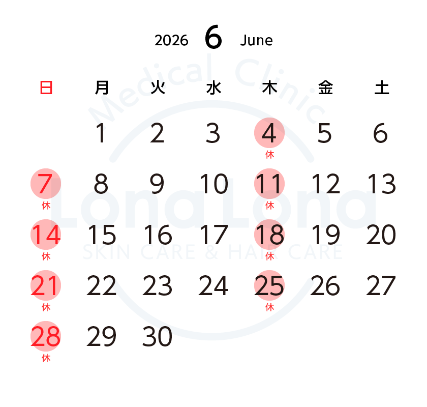ロナロナクリニックの休診日は、毎週木曜日と日曜日です。
